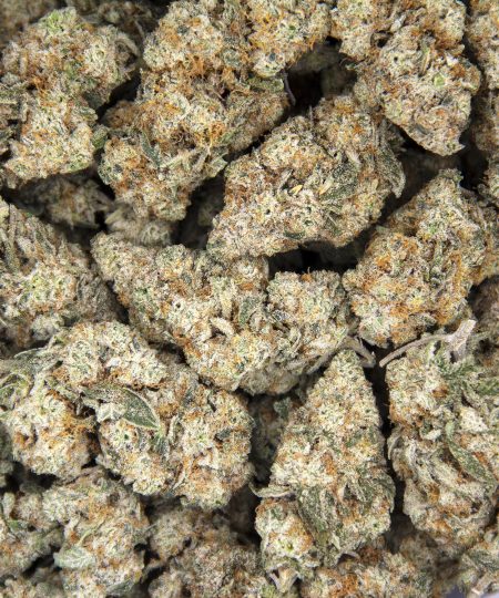 Hawaiian Cheesecake, also known as “Hawaii Cheesecake,” Hawaiian Cheese Cake” or “Waikiki Cheesecake,” is a heavily sativa dominant hybrid strain (90% sativa/10% indica) created through crossing the bold (Gouda Berry X Blue Steele) X (Gouda Berry X Blue Steele) strains. When it comes to the flavor of this bud, the name says it all. Hawaiian Cheesecake packs a sweet and fruity strawberry flavor with a rich and creamy cheesy exhale. The aroma is very similar, almost like a freshly cut slice of sugary strawberry cheesecake topped with fresh flowers. The Hawaiian Cheesecake will keep you coming back for more, with a happy overtone that is filled with lifted energy and motivation. You’ll feel these effects hit you pretty soon after your first exhale, filling your mind with a lifted sense of happiness and ease. This boost is slightly tingly, activating your senses and filling you with motivation and focus. A light physical energy accompanies this heady boost, helping to get you up and moving. Thanks to these effects and its high 20% + average THC level, Hawaiian Cheesecake is often chosen to treat those suffering from conditions such as chronic fatigue, depression or mood swings, chronic pain, ADD or ADHD and chronic stress. This bud has airy heart-shaped emerald green nugs with thin orange hairs and tiny golden white crystal trichomes.