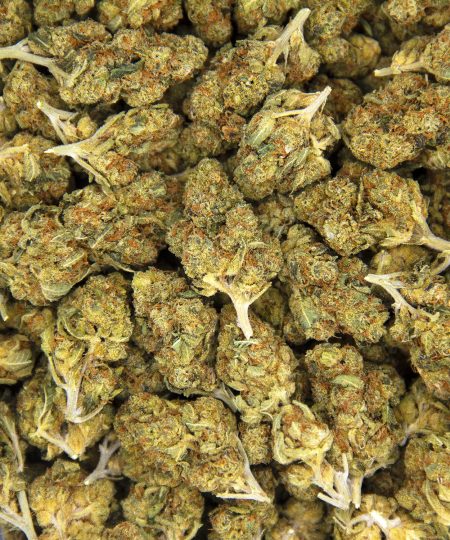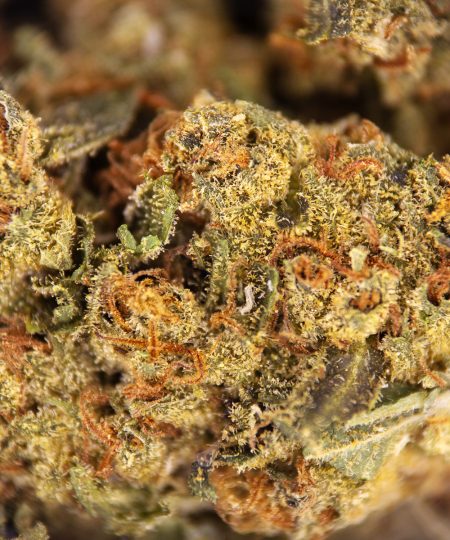 This delightful cross of Space Queen and Orange Skunk hits THC levels of 18%, putting it in the upper tier of potency. The sativa/indica ratio is 60:40, a combination that creates an upbeat, euphoric head high with bursts of energy and creativity. CBD levels are very low, less than 1%, so this strain isn’t very effective at treating seizures. But it is good at treating anxiety, depression, PTSD, bipolar disorder, ADHD, and pain (including migraines). Jillybean has a strong, sweet taste and a smell of oranges and mangoes. It has a shiny, frosted appearance created by a dense layer of trichomes, with flecks of green and gold. The flavor, as the name suggests, is similar to jelly beans. Dry mouth is common, while dry eyes, paranoia, and anxiety are more limited. Jillybean is a great daytime strain, ideal for getting things done and staying positive. The high is bubbly and cerebral, though the indica genes deliver limited body effects. Jillybean is definitely a popular choice, mostly due to its strong sativa effects and mood boost.