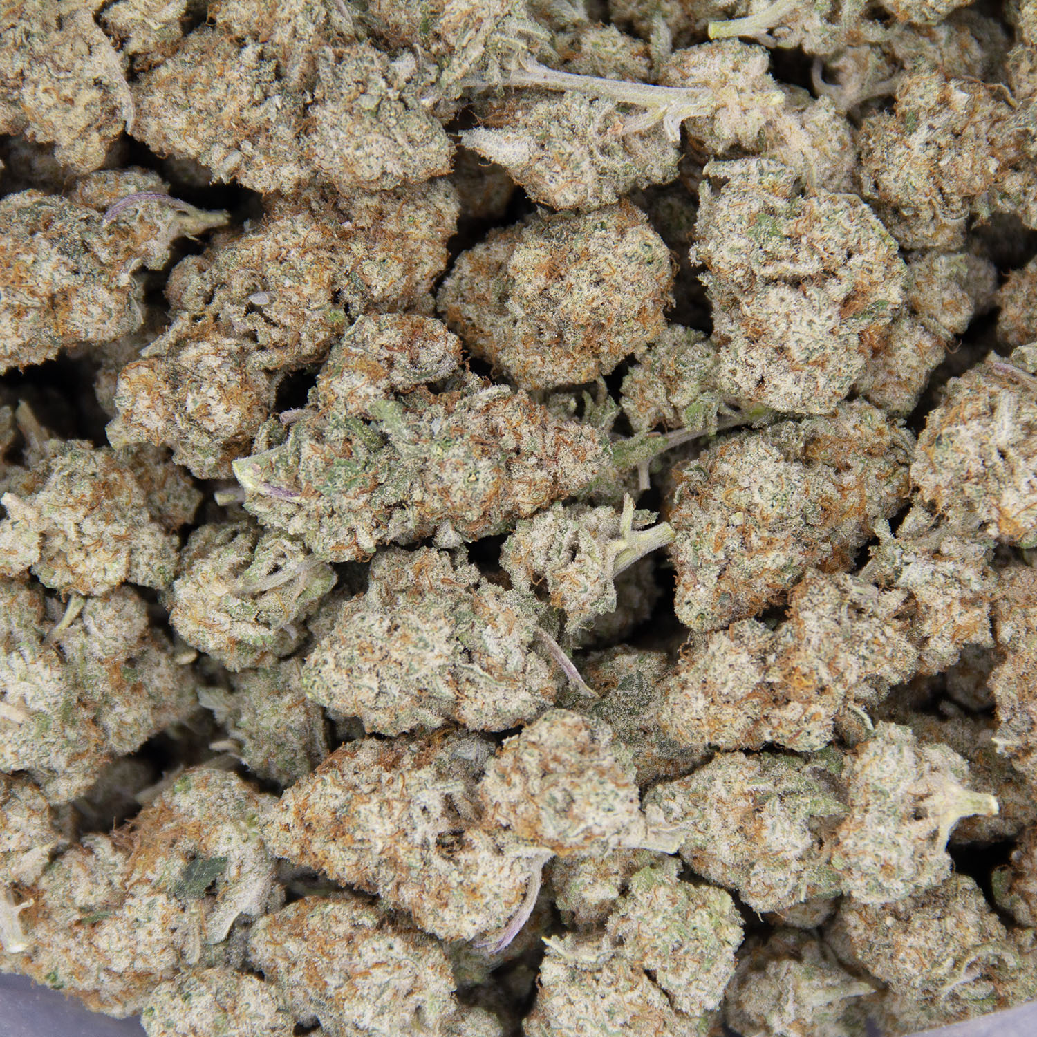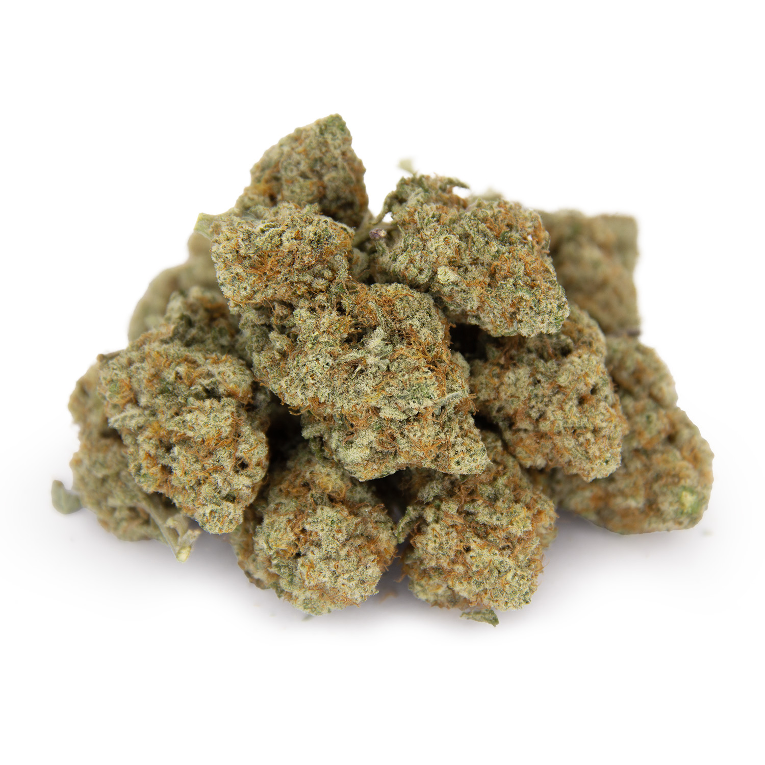 MAC, also known as “Miracle Alien Cookies,” is an evenly balanced hybrid strain (50% indica/50% sativa) created through crossing the infamous Alien Cookies X (Colombian X Starfighter) strains. Perfect for any hybrid lover who appreciates a super heavy flavor and high, MAC brings on the hard-hitting effects that will have you feeling totally happy with the world around you in no time at all. It starts with a rush of heady effects that fill your mind with a sense of happy creativity and pure euphoria. This is accompanied by a deep-felt relaxation that permeates your very being, leaving you totally calm in both mind and body without a care or pain in the world. Thanks to these effects and its high 14-20% average THC level, MAC is said to be perfect for treating those suffering from conditions such as insomnia, appetite loss or nausea, chronic stress, depression, chronic pain and mood swings. This bud has a dank sour citrus flavor with a spicy earthy overtone that sweetens upon exhale. The aroma is of earthy herbs and pungent diesel, all wrapped up in a sour dank overtone that fills any room with its heavy stench. MAC buds have super sticky long grape-shaped minty green nugs with sparse orange hairs and a coating of tiny white crystal trichomes.