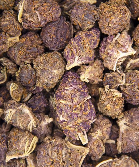 Twisted Purple is an extremely rare indica dominant hybrid strain created through a powerful three-way cross of the infamous Sour Diesel X Bubba Kush X OG Kush strains. This bud has a classic purple flavor, with hints of musky grape and earth accented by sweet kush. The aroma has a pungency to it, almost like rotting grapes or a cup of well-aged spiced wine. The Twisted Purple OG high is that of a classic Purple strain, with calming sedative effects that can quickly become stoney at times. The high starts with a calming euphoric lift that boosts your mood and leaves you feeling completely euphoric and slightly sedated. This effect can leave you feeling introspective and spacey before you fall into a heavy stone that can quickly become sleepy. Paired with its high 10-17% average THC level, these effects give Twisted Purple OG an edge in treating conditions such as chronic pain, MS, insomnia, appetite loss, and chronic anxiety.