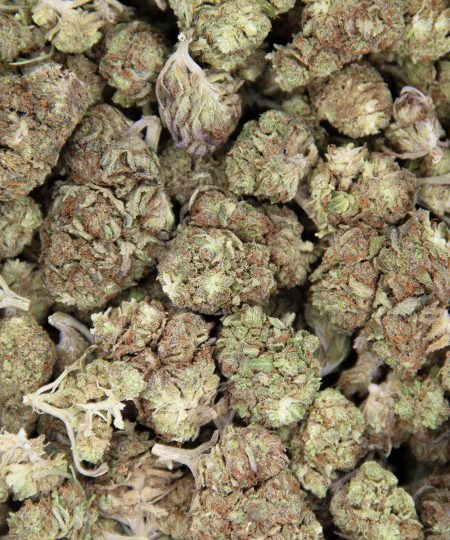 Alien Cookies is an evenly balanced hybrid (50% sativa/50% indica) strain created through a cross of the popular Alien Dawg X Girl Scout Cookies strains. This bud is incredibly rare to find, but totally worth it every time because of its flawless combination of its parents’ effects. The Alien Cookies high has a happy and relaxing nature powered by an average THC level of 21% or more that is mild upon first hit, but can prove to be debilitating if you risk any more. It hits you first with a happy lift that leaves you in a state of utter peace before catapulting you into a powerful couch-lock and a sedated hungry state that leaves you questioning if you should sleep or eat everything in your house. Many users report falling asleep as the high builds, especially if they are less experienced or took a few tokes. These effects make Alien Cookies ideal for treating conditions such as chronic pain, appetite loss, muscle spasms, insomnia, and chronic stress or anxiety. This bud has a surprisingly sweet vanilla flavor accented by pungent earth, and a strong aroma of pungent kush with a hint of sweet vanilla as the nugs are burned. Alien Cookies has lumpy leafy small bright neon green nugs with rich amber hairs and a thick frosty coating of amber colored tiny crystal trichomes.