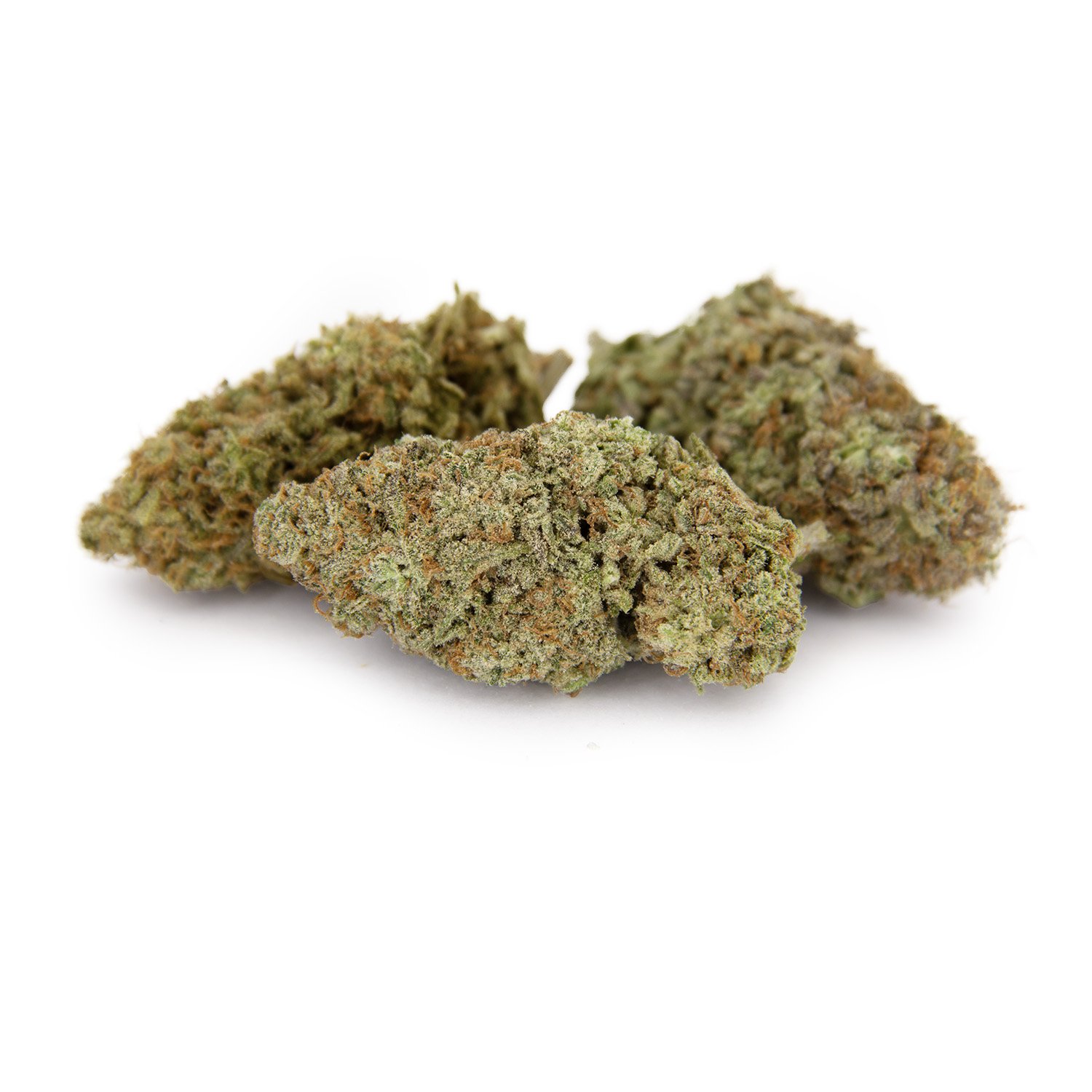 Animal Mints is an evenly balanced hybrid strain (50% indica/50% sativa) created through crossing the classic Thin Mint Girl Scout Cookies X Fire OG strains. Looking for an insanely delicious toke that will hit both mind and body with a high level of potency? Animal Mints is totally it. This baby packs a super sweet minty cookie flavor into each and every toke, with a lightly nutty vanilla exhale. The aroma is of earthy pine with a hint of sharp mint and pungent diesel, all wrapped up with a notable cookie effect as the nugs are burned. The Animal Mints high is just as delightful as the flavor, with long-lasting effects that are perfect for kicking back after a long and stressful day. You’ll feel a cerebral effect first, filling your mind with a sleepy lifted sense that leaves you totally stoned and fading in and out of focus. A full heavy body high comes next, lulling you into a state of couch lock before you drift away into peaceful sedation. With these effects and its super potent 22-25% average THC level, Animal Mints is said to be perfect for treating chronic pain, insomnia, depression, chronic stress, cramps and muscle spasms. This bud has fluffy oversized popcorn-shaped forest green nugs with thin light amber hairs, tiny matching trichomes and a sticky sweet coating of syrupy resin.