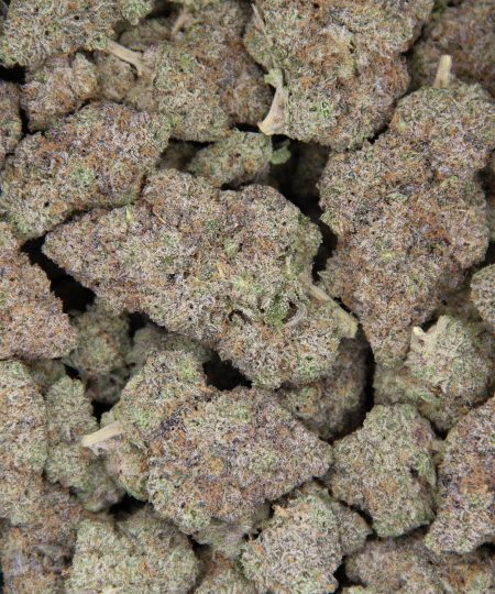 Blue Dream is a slightly sativa dominant hybrid (60% sativa/40% indica) strain that is a potent cross between the hugely popular BlueberryX Haze strains. This infamous bud boasts a moderately high THC level that ranges from 17-24% on average and a myriad of both indica and sativa effects. Users describe the Blue Dream high as having an immediate onset of an uplifting cerebral head high that leaves you completely motivated and focused with waves of creative energy that hit quickly and hard. This is accompanied by a mellow relaxing body high that leaves you warmed, numb, and completely pain free. Due to these potent combination effects, Blue Dream is said to be an ideal strain for treating patients suffering from conditions such as chronic stress, chronic pain due to injury or illness, mild to moderate cases of depression, and sleep disorders, including insomnia. Blue Dream has a delicious aroma of sweet blueberry pie and a taste of sugary sweet blueberries that stays on your tongue long after smoking. This bud has large dense yet fluffy popcorn-shaped bright neon green nugs with amber and blue hairs and rich blue undertones. These nugs are dusted with a fine layer of sandy milky white trichomes and sweet sticky resin.