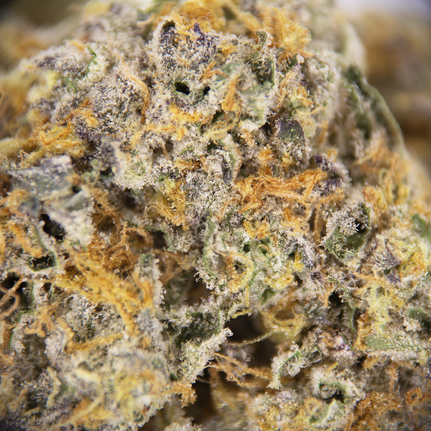 Cake Bomb is an indica dominant hybrid strain (70% indica/30% sativa) created through crossing the delicious Do-Si-Dos X PCS1 strains. If you’re looking for a super potent bud with long-lasting effects and an amazing flavor, you’ve found it with Cake Bomb. This bud packs a sweet and nutty, creamy vanilla cake flavor topped with hints of sugary fruits and a touch of spicy pepper. The aroma is on the heavier side, with an added diesel-like overtone that intensifies as the nugs are burned away. The Cake Bomb high will hit you pretty quickly, activating your brain with an energetic sense that gets you feeling sociable and outgoing. As your mind becomes more vibrant and active, a super heavy body high will take over your physical form, eventually locking you down to the couch with a deep physical stone. Thanks to these effects and its high 20-24% average THC level and 0-1% average CBD level, Cake Bomb is often chosen to treat a variety of conditions including chronic fatigue, cramps or muscle spasms, chronic stress, the symptoms of PMS and depression.