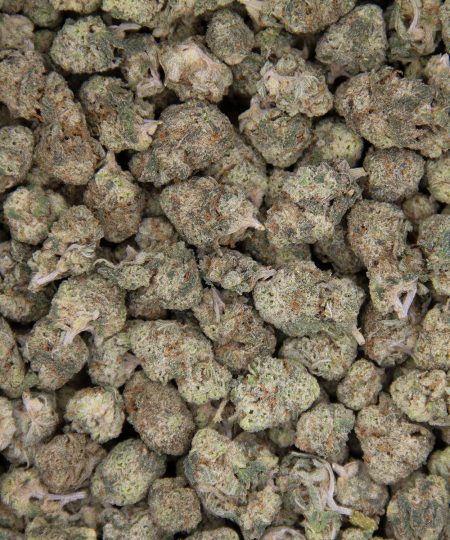 Donkey Butter is a rare indica dominant hybrid strain (70% indica/30% sativa) created through crossing the classic Grease Monkey X Triple OG strains. The name may be weird, but this bud packs a super savory pungent flavor and lifted effects that are perfect for any indica lover. Donkey Butter has a spicy skunky flavor with hints of earthy pine and herbs as you exhale. The aroma is very heavy and pungent with a spicy diesel effect that’s accented by rich skunk and rotting pine. The Donkey Butter high has a euphoric overall feel that’s perfect for evenings when you want to kick back and relax. You’ll feel a relaxing lift at the onset of the high that fills you with a light tingly energy and a sense of euphoria. Soon, this effect will fade into a deep peaceful body high that leaves you sleepy, couch-locked, and slightly aroused. Thanks to these effects and its high 26-28% average THC level, Donkey Butter is often chosen to treat conditions such as chronic stress, insomnia, chronic pain, migraines or headaches, and nausea. This bud has long tapered olive green nugs with thin amber hairs and a coating of super thick frosty golden crystal trichomes.