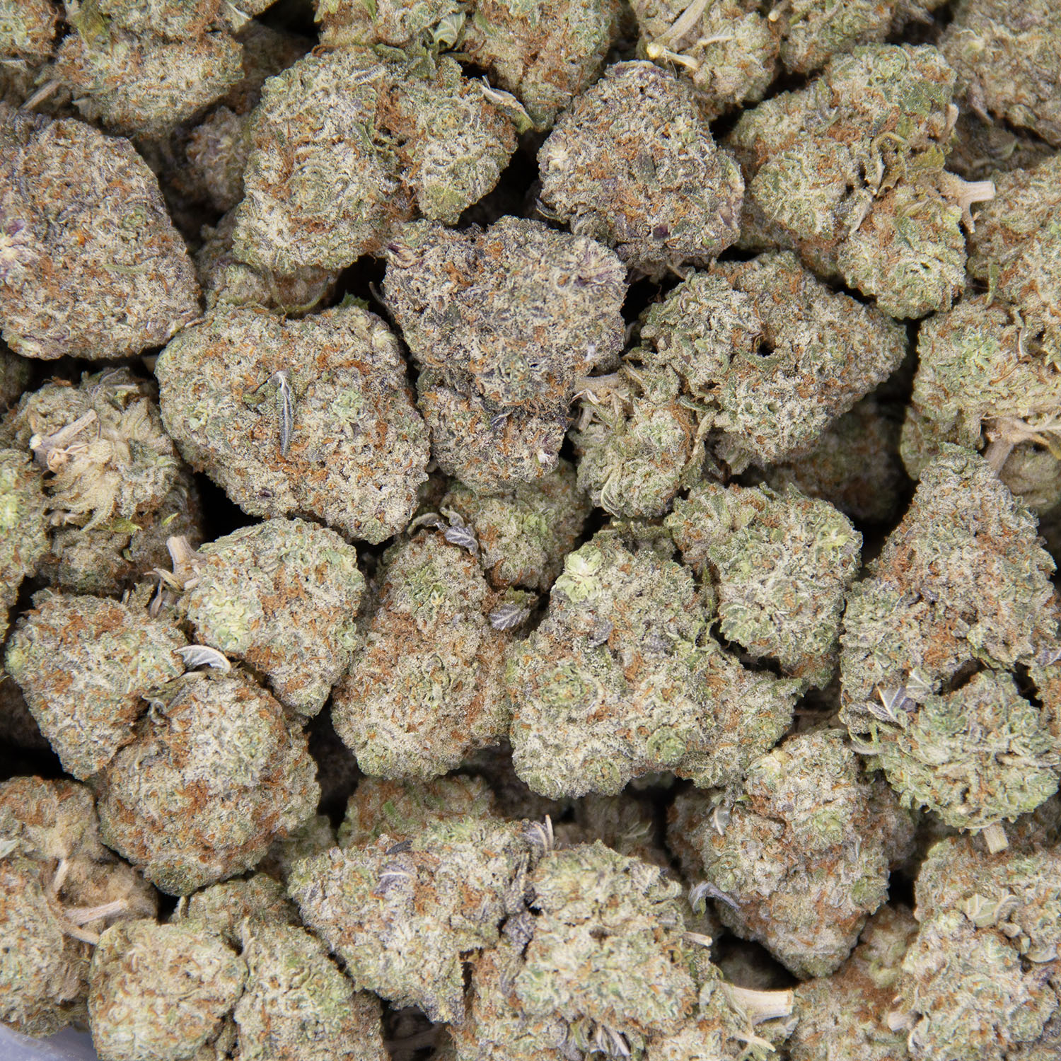 Rainbow Cake is an evenly balanced hybrid strain (50% indica/50% sativa) created through crossing the tasty Wedding Cake X Rainbow Belts strains. Named for its gorgeous appearance and classic heritage, Rainbow Cake is the perfect choice for any hybrid lover. This bud has spade-shaped olive green nugs with bright purple undertones, thin vivid orange hairs and a coating of purple-tinted white crystal trichomes dripping with sweet sticky resin. As you pull apart each sparkling nugget, aromas of sour citrus, fruity berries and sweet creamy vanilla are released. The flavor follows the same profile, with a sweet fruity rainbow cake taste accented by touches of sour citrus and fresh berries. The Rainbow Cake high is just as mouthwatering, with a euphoric overtone that will have you feeling lifted for hours on end. The effects come on with a creeping build, filling your brain with an uplifted happiness that edges out any negative or racing thoughts. You’ll feel giddy and without a care in the world as your body begins to slip away into a deeply relaxing state of pure ease. This combination can quickly become sedative, leaving you dozing off before you know it. In combination with its high 20-25% average THC level, these effects make Rainbow Cake perfect for treating a variety of conditions including chronic pain, inflammation, cramps or muscle spasms, arthritis and insomnia.
