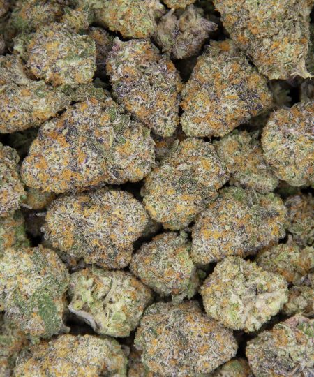 Tropical Punch is a slightly sativa dominant hybrid strain (60% sativa/40% indica) created through crossing the delicious Skunk X Haze X Northern Lights strains. Ready for a sweet punch of delicious tropical flavors? Tropical Punch will definitely bring that on, filling your mouth with delicious tropical pineapple and sour citrus with each and every toke. The aroma is just as delicious, with a flowery and woody overtone that turns skunky and herbal as the nugs are burned away. The Tropical Punch high hits you almost as soon as you exhale, launching your mind into a lifted state of happy euphoria, pushing out any negative or racing thoughts almost immediately. You’ll feel an influx of creativity and sociability that has you carrying on conversations with those around you with ease. A relaxing body high accompanies this lifted mental state, keeping your body anchored with a sense of calm as your mind climbs higher and higher. Thanks to these effects and its high 18-25% average THC level, Tropical Punch is said to be perfect for treating conditions such as chronic pain, mood swings, depression, chronic stress and chronic fatigue. This bud has small rounded fat bright neon green nugs with lots of thin orange hairs and a coating of tiny frosty golden amber crystal trichomes.